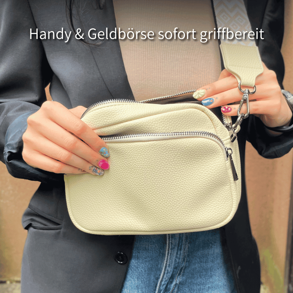 Dank 5 praktischer Fächer – davon 3 mit Reißverschluss – findest du Schlüssel, Handy und Portemonnaie im Handumdrehen. Ganz ohne Kramen.